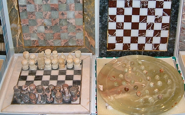 Onyx is a natural stone related to travertine and marble, all of which are mined in Turkey. You can find different colours including green, white, black and pink. Local artisans are experts at making items of jewellery as well as beautiful vases, chess sets, and numerous other attractive artifacts and knick-knacks. These workshops often sell gold and silver jewellery in traditional Turkish and modern designs and semi-precious gems.
